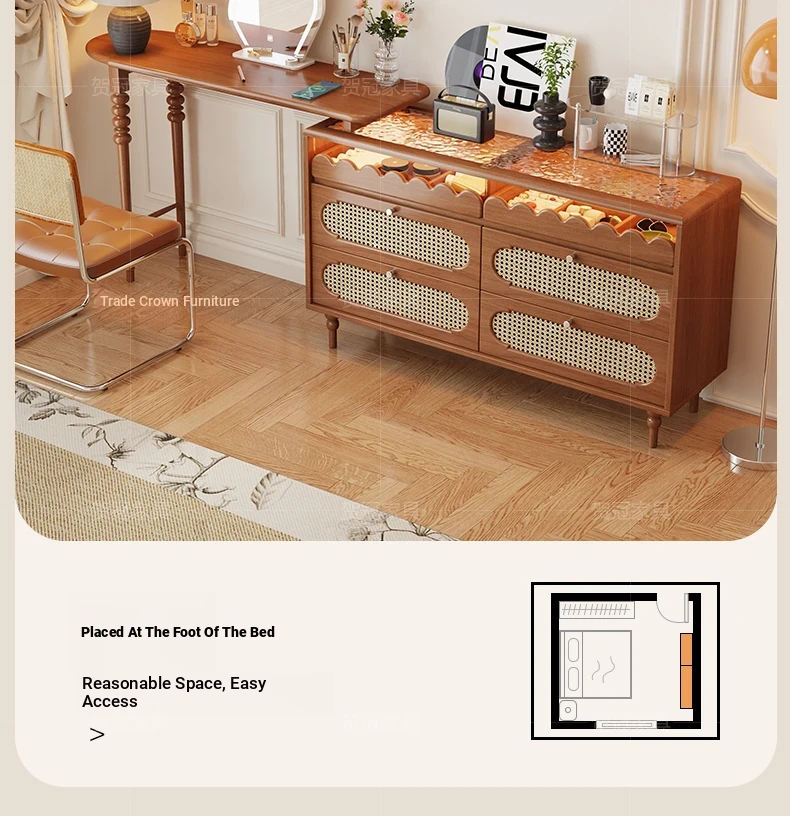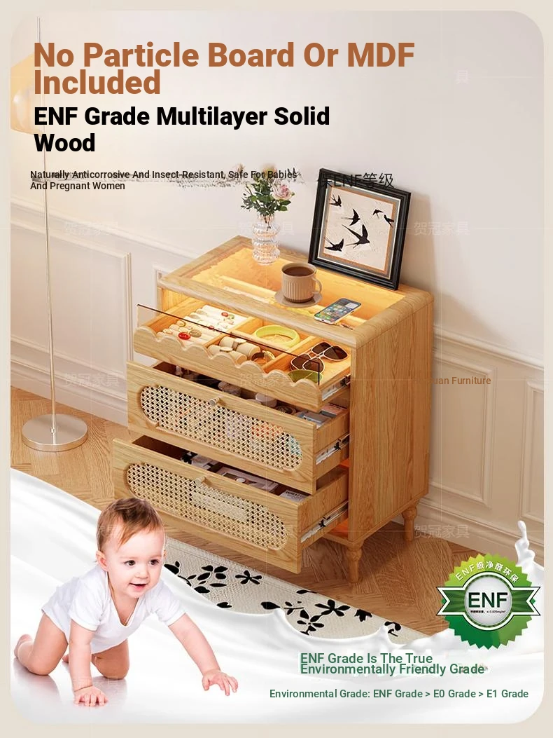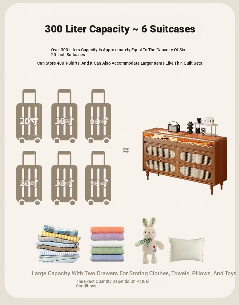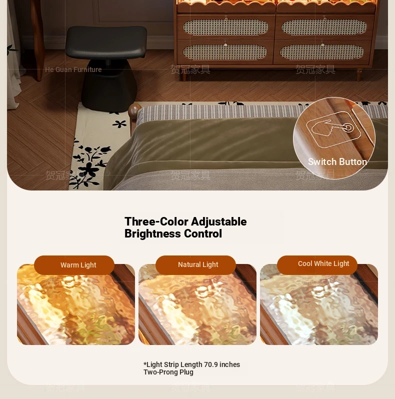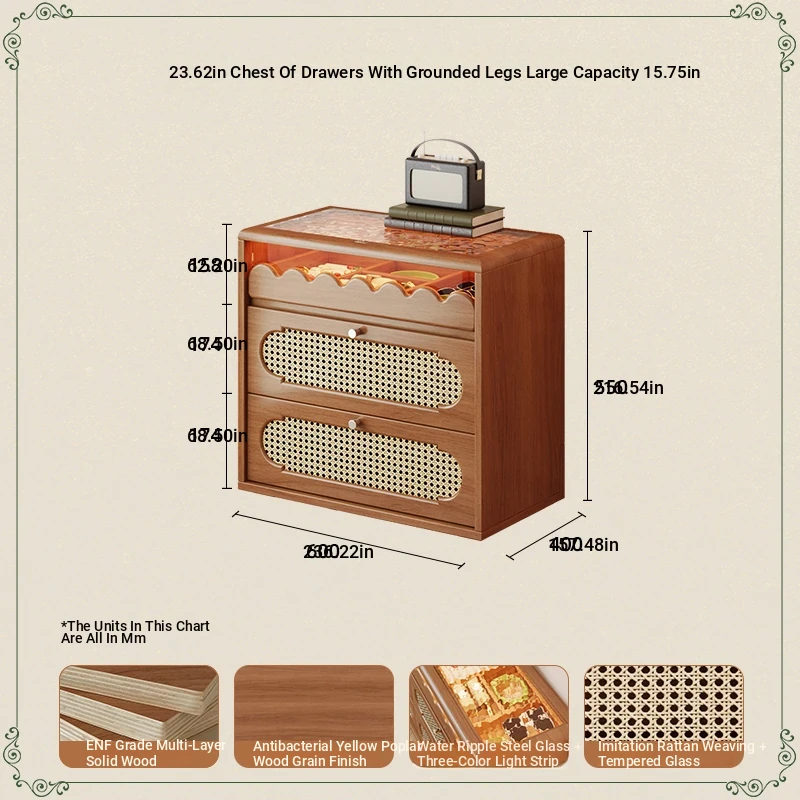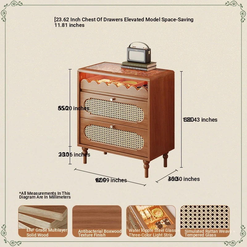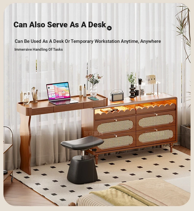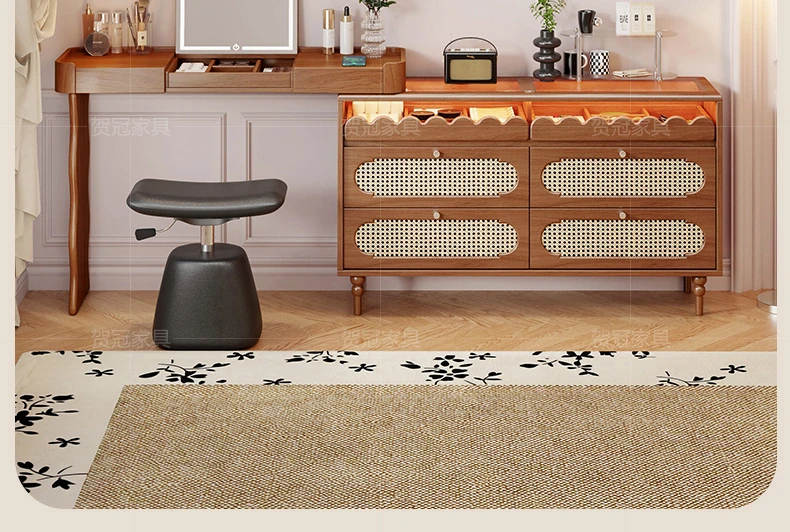 Vintage Chinese Solid Wood Sideboard with Built-in Storage - South Asian-Style Six-Drawer Cabinet for Living Room with Ambient Lighting