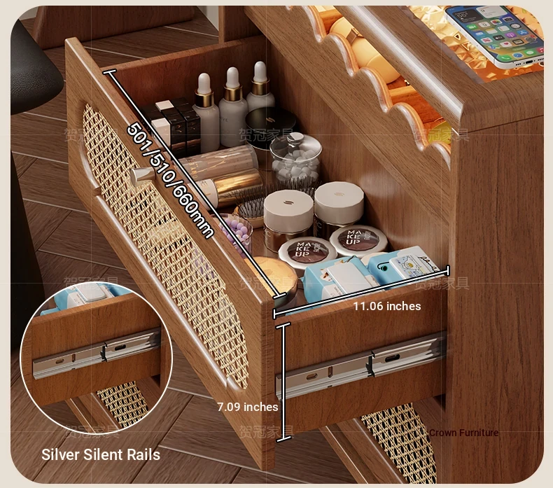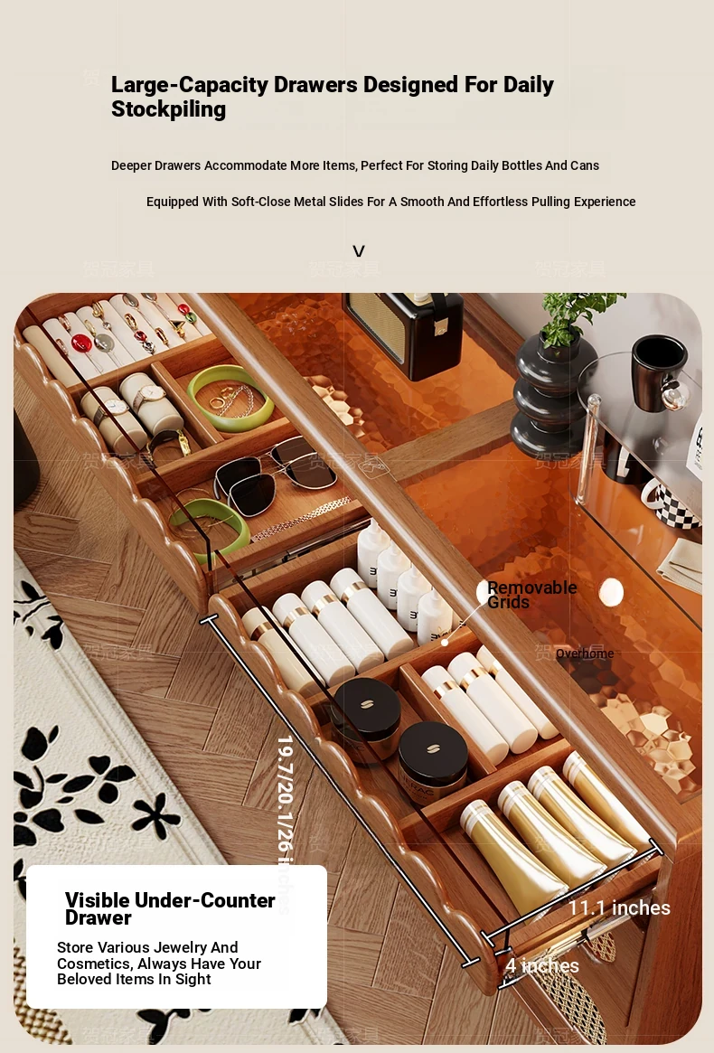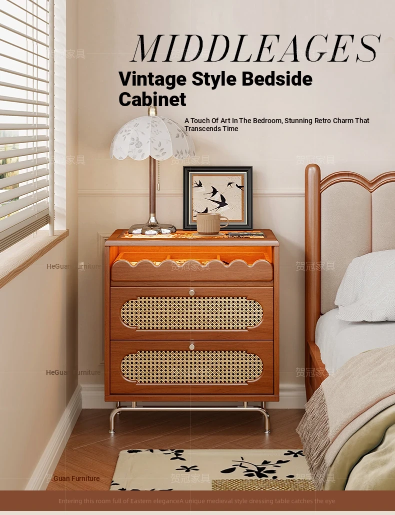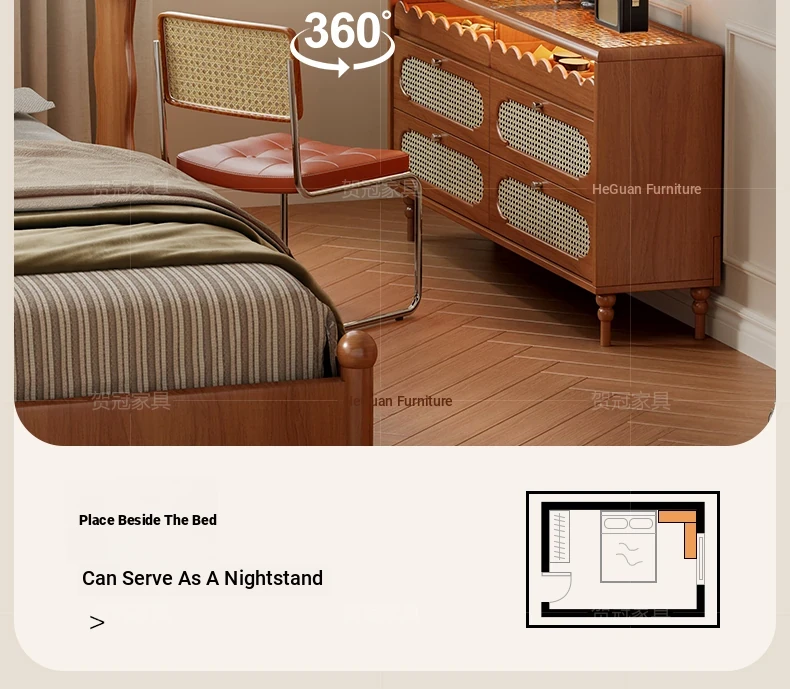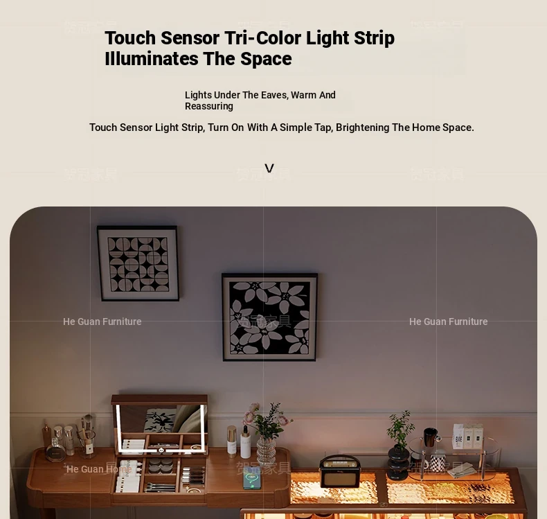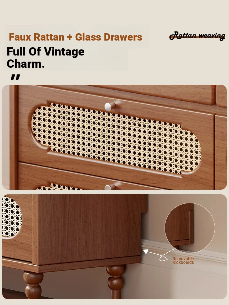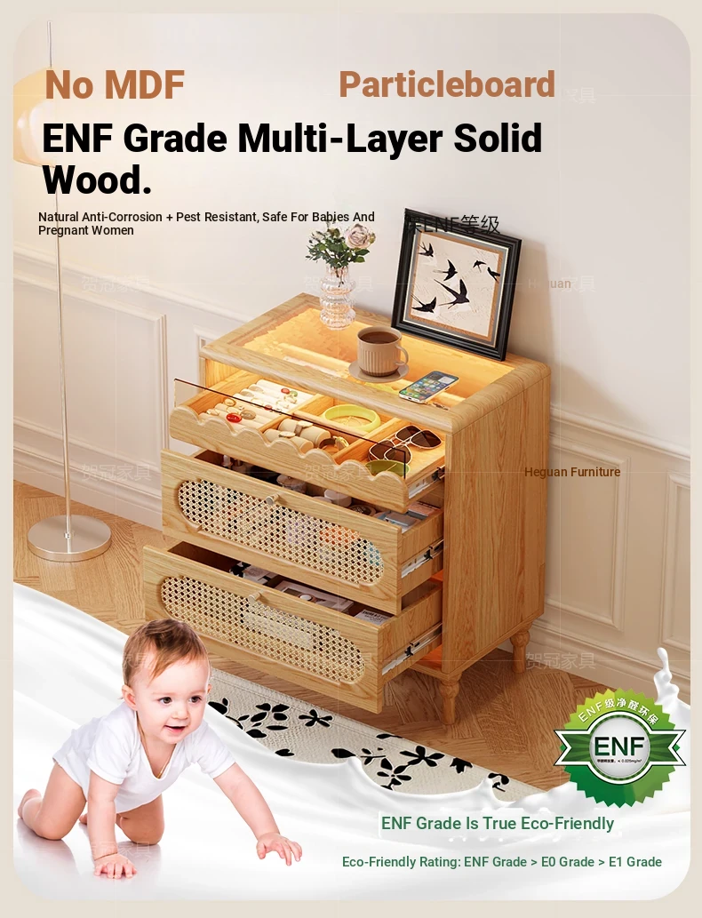 Vintage Chinese Solid Wood Sideboard with Built-in Storage - South Asian-Style Six-Drawer Cabinet for Living Room with Ambient Lighting
