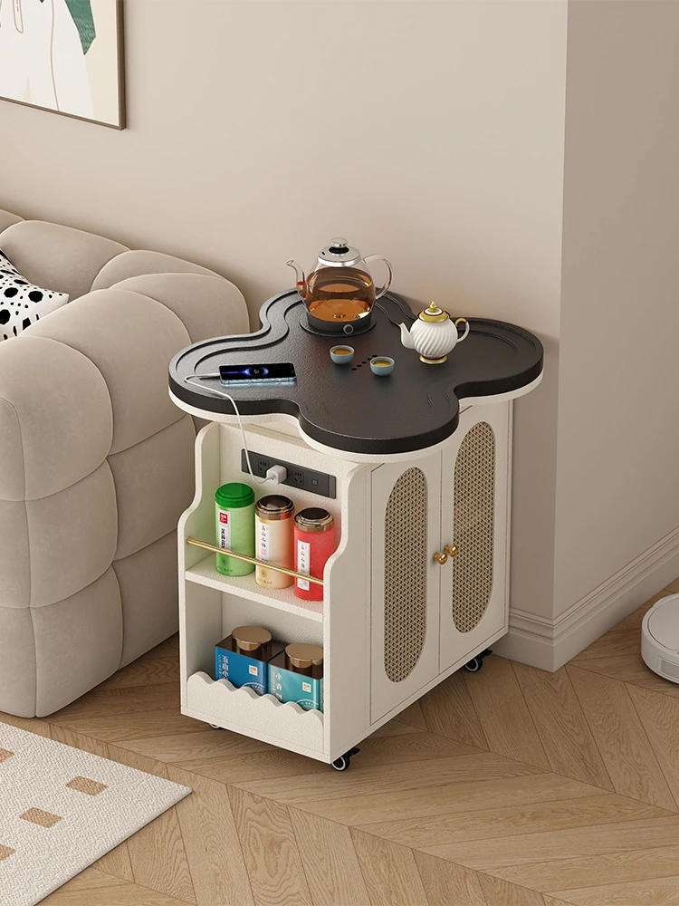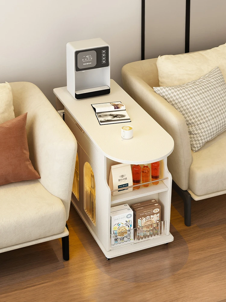 Rock plate telescopic Movable tea table [antibacterial leather White + Sheung Shui tea full automatic]]