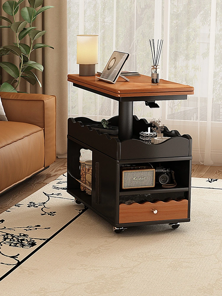 [Retro Elegant Black] 31.50 in Movable Flip Adjustable Tea Table