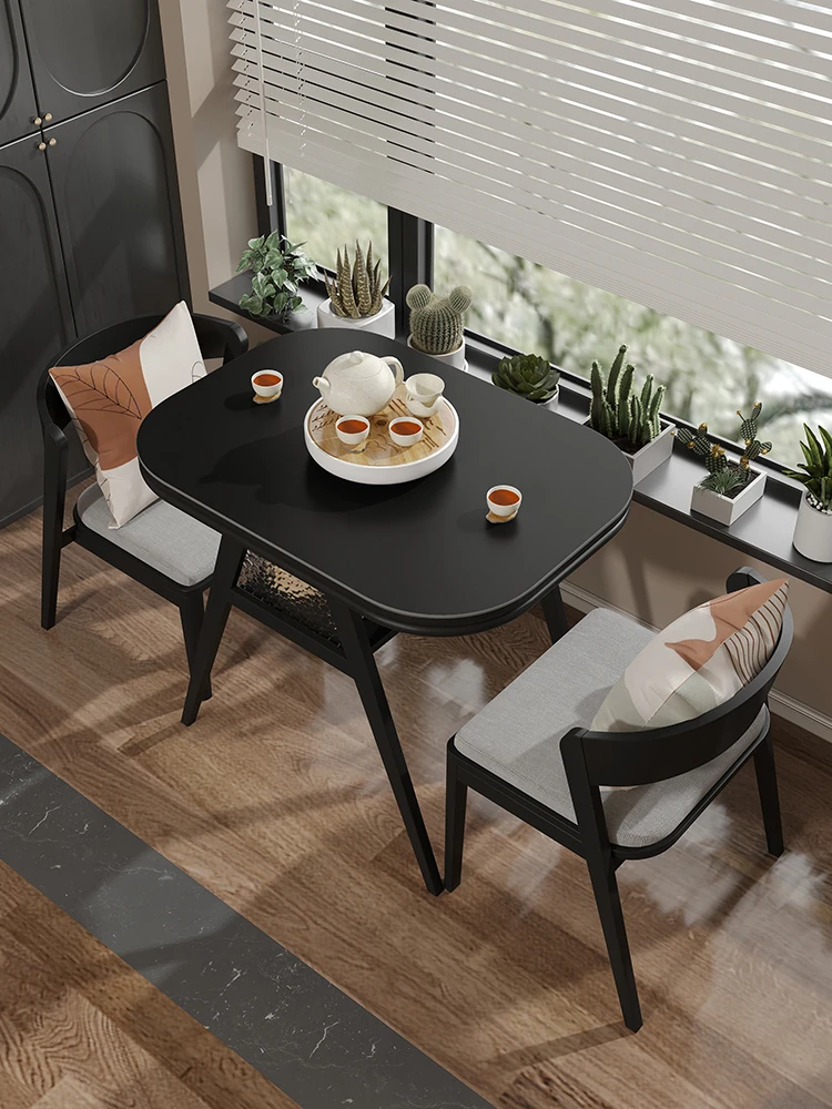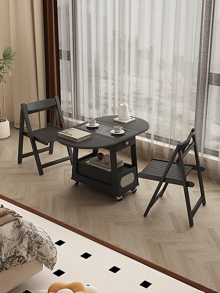 [Retro Elegant Black] 23.62 in Movable Flip Tea Table