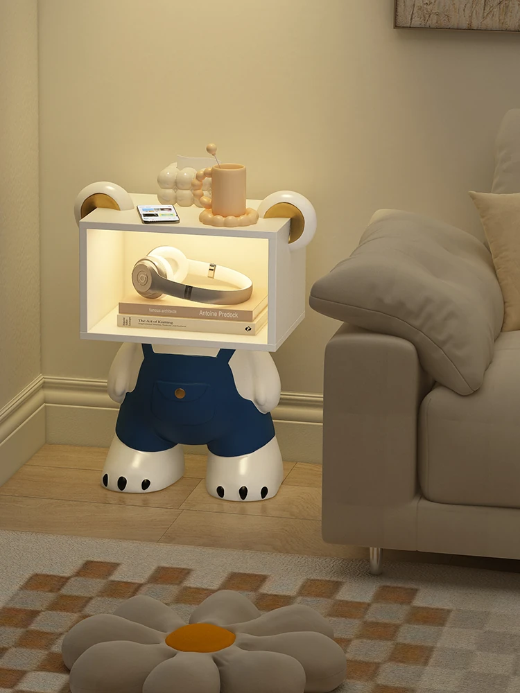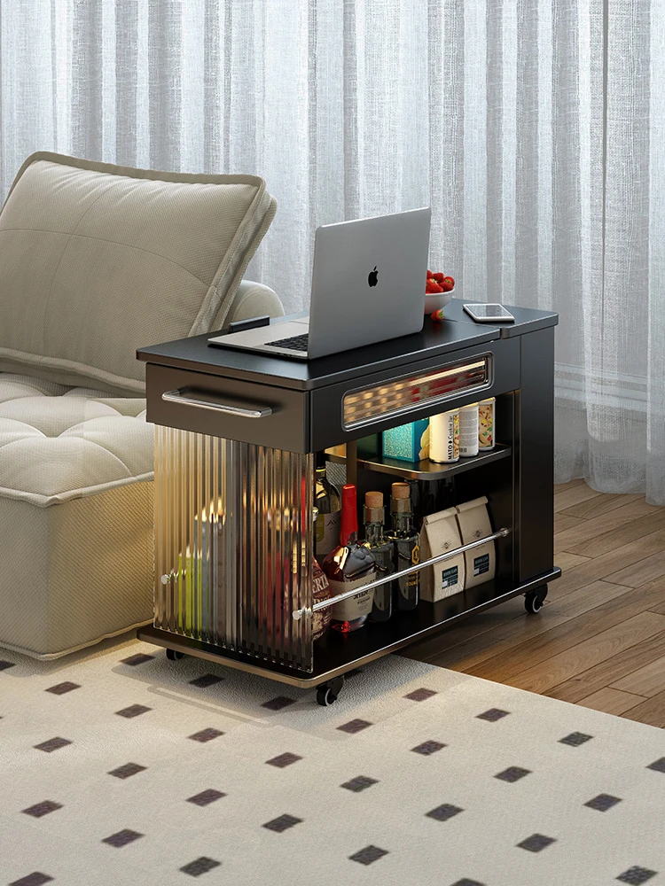 19.69in Multifunctional Adjustable Side Table [Black Antibacterial Environmental Protection Board + Liftable Rotate Desktop + Universal Wheel + USB Charging + Lamp Band + Fingerprint Lock]]